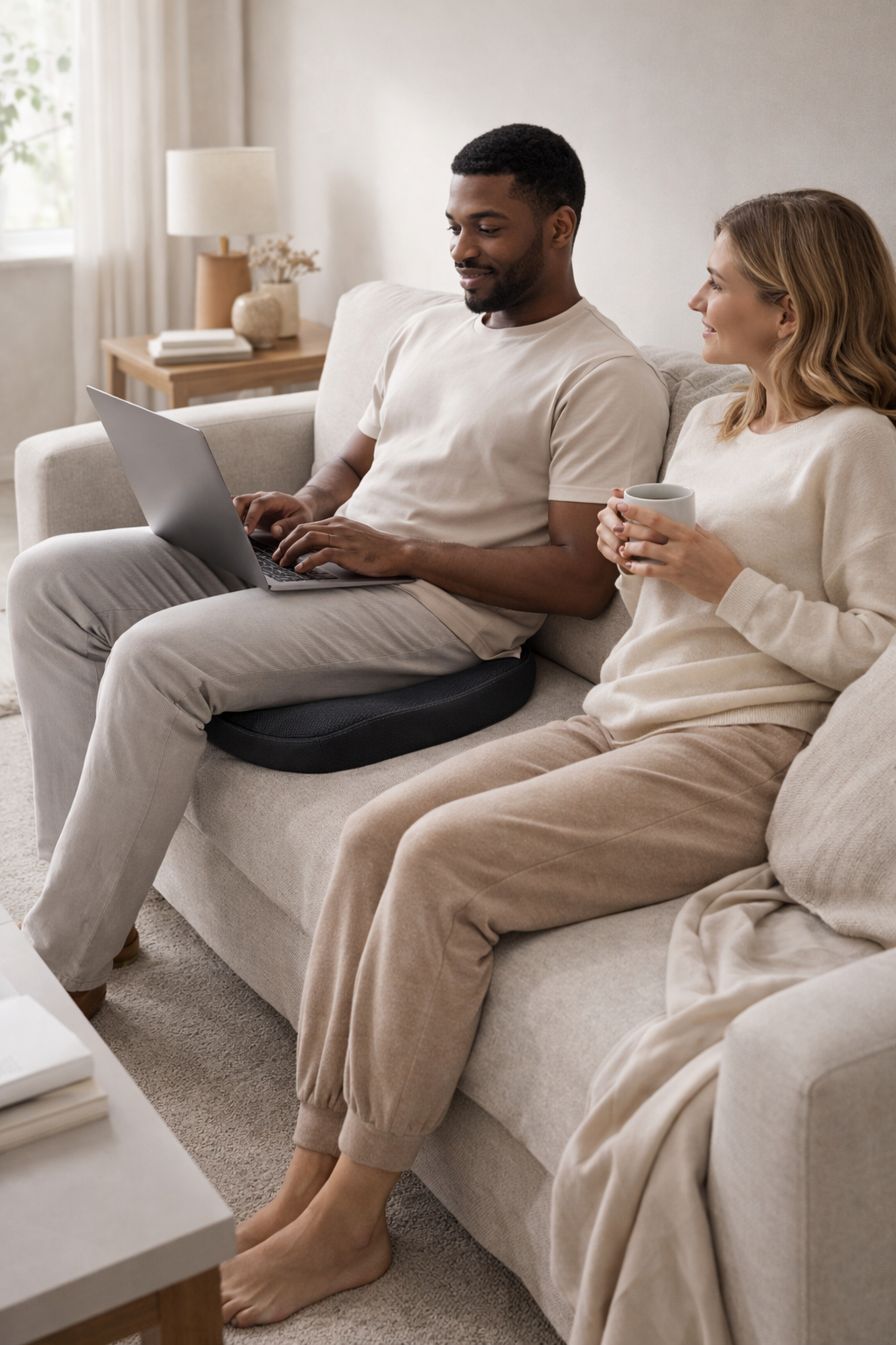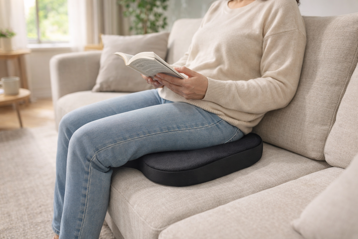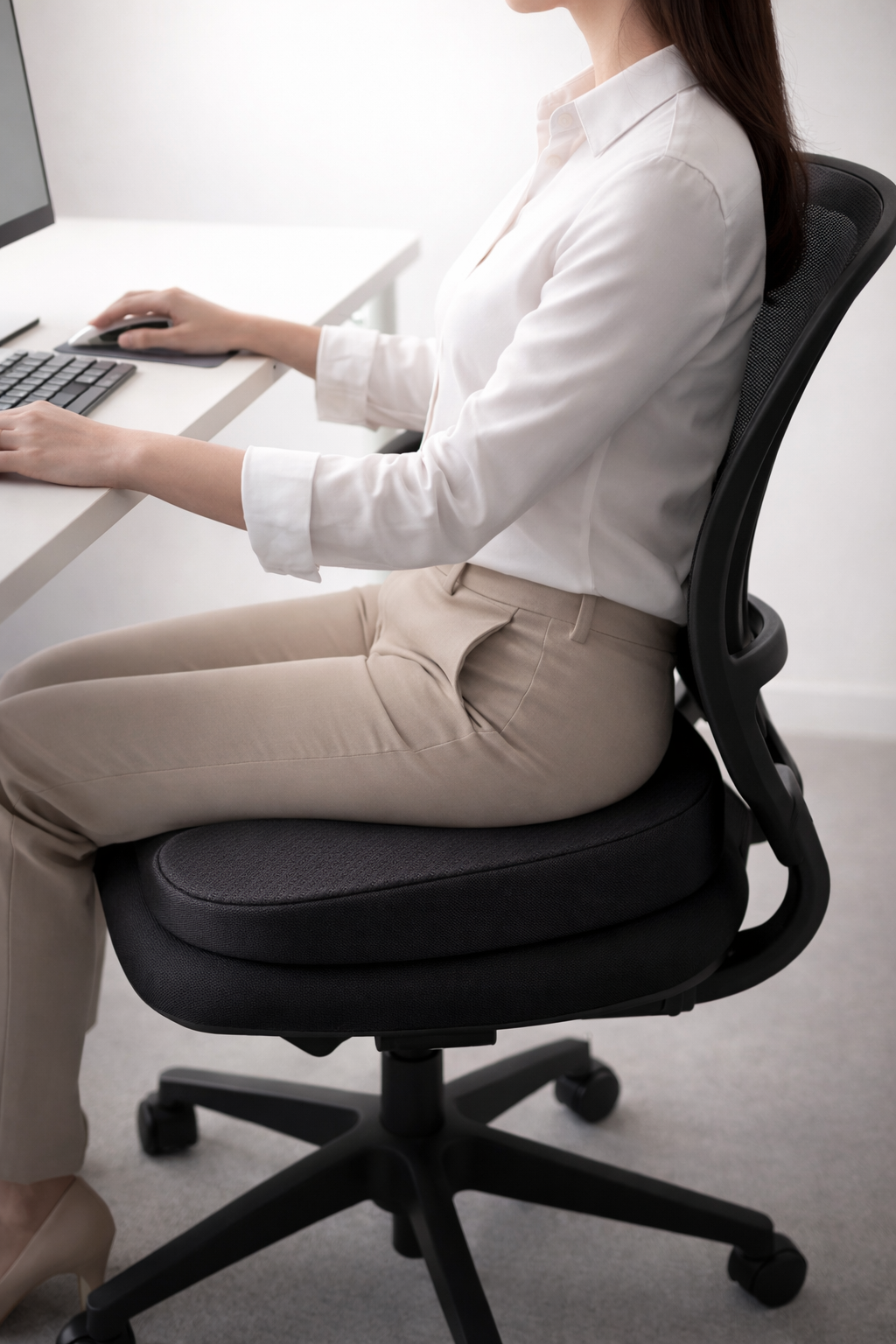 Le coussin Ergonia est conçu pour réduire les tensions du bas du dos et améliorer votre posture, au bureau ou à la maison.